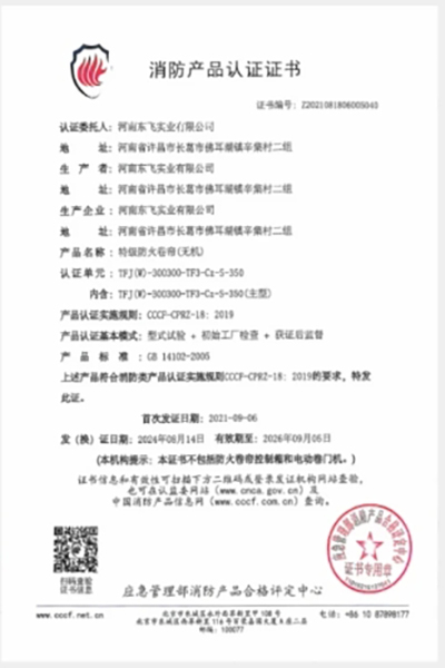 產品經應急管理部消防產品評定中心檢驗,獲得消防產品認證證書